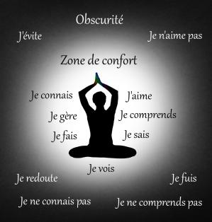 Il est bon de noter que tout ce qui se trouve en dehors de notre zone de confort est ce que l'on ne reconnaît pas en soi, ce dont on se sent séparé, coupé, et plus nous avons de peurs plus notre zone de confort semble étroite et sécurisante. Ainsi, tout ce qui se trouve au-delà de notre cocon nous paraît bien obscur, pourtant, il suffit parfois d'y déposer un peu de lumière pour dissiper la peur, telle une ampoule que l'on allume dans une pièce sombre et qui transforme les ombres terrifiantes en simple objets du quotidien.