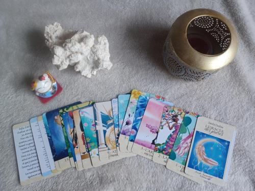 En accompagnement du livre l'Oracle permet de définir ce qu'il serait bénéfique de travailler en soi, pour cela, il suffit de tirer une carte au hasard, puis de s'imprégner de la prière notée dans le livre. Lorsque l'Oracle se joue seul, il permet de faire le point sur notre évolution, de mettre en lumière nos blocages comme nos forces.